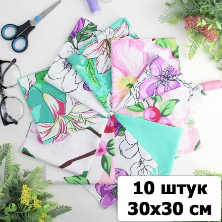 Набор ткани для пэчворка и шитья Ботаника 30х30 (10 шт)