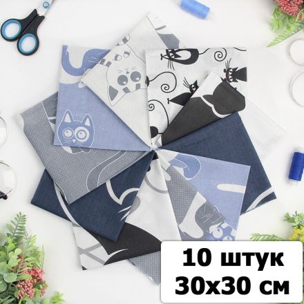 Набор ткани для пэчворка и шитья Кошки 30х30 (10 шт)