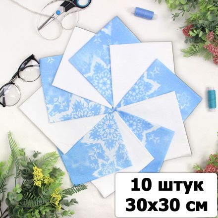 Набор ткани для пэчворка и шитья Снежинки 30х30 (10 шт)