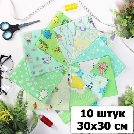 Набор ткани для пэчворка и шитья Детский - Зеленый 30х30 (10 шт)