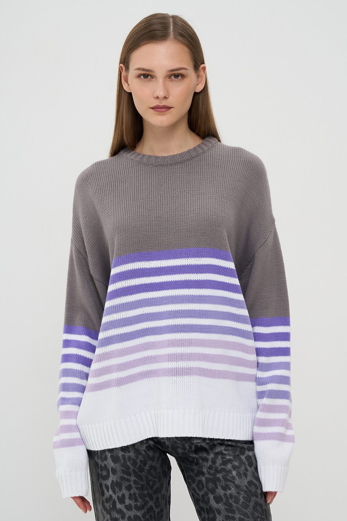 Джемпер VAY #1051173Титаниум/белый/лиловый/гортензия/ирис