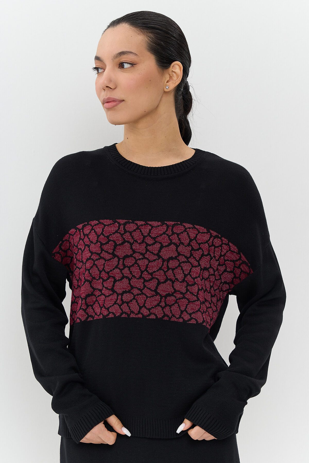 Джемпер VAY #1051213Черный/марсала/метонить мультиколор