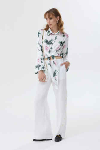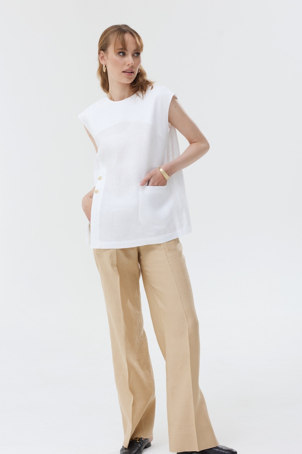 Комплект брючный.Блузка без рукавов из льняной ткани