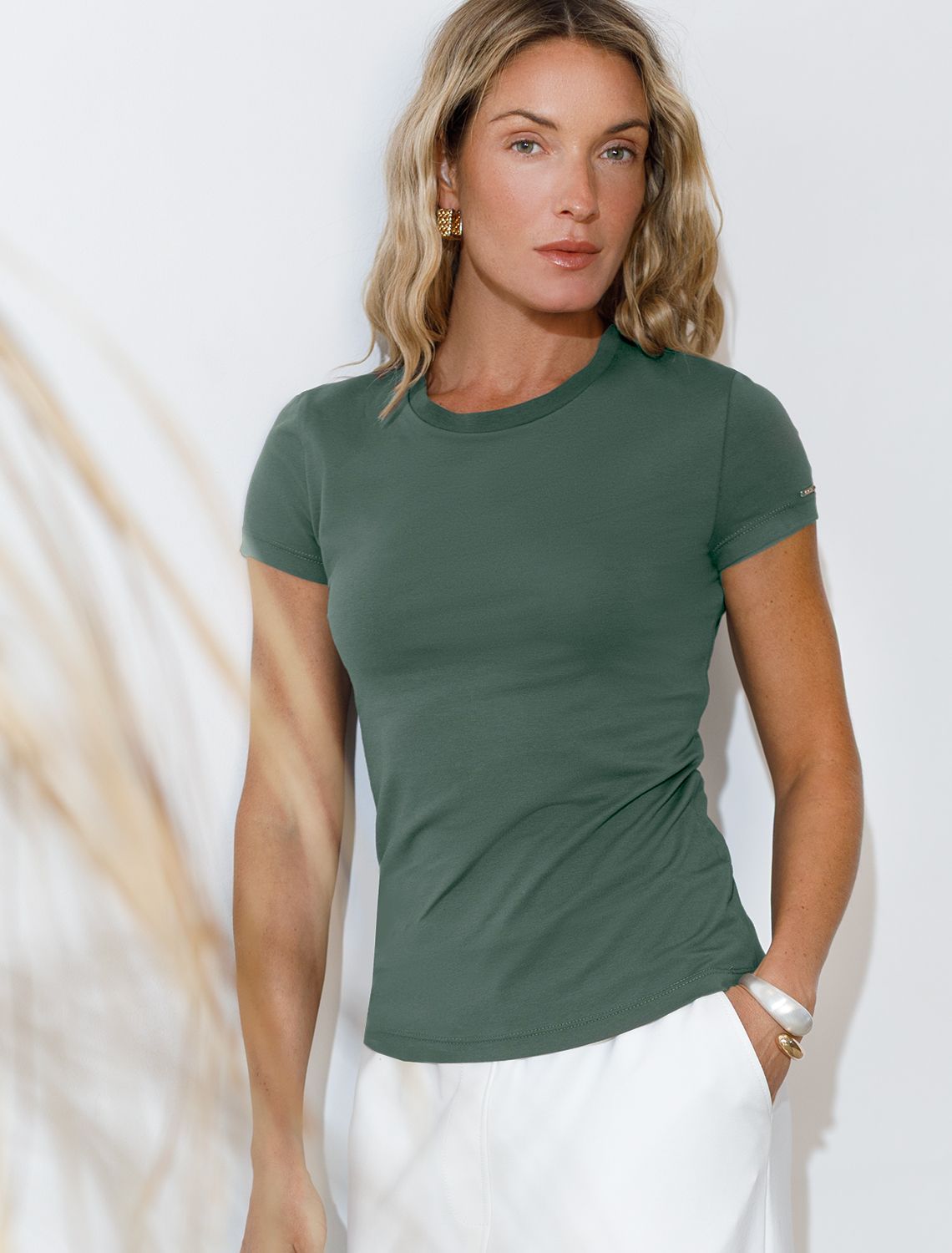 Футболка из премиального хлопка с V-образным вырезом D49.109 оливковый
