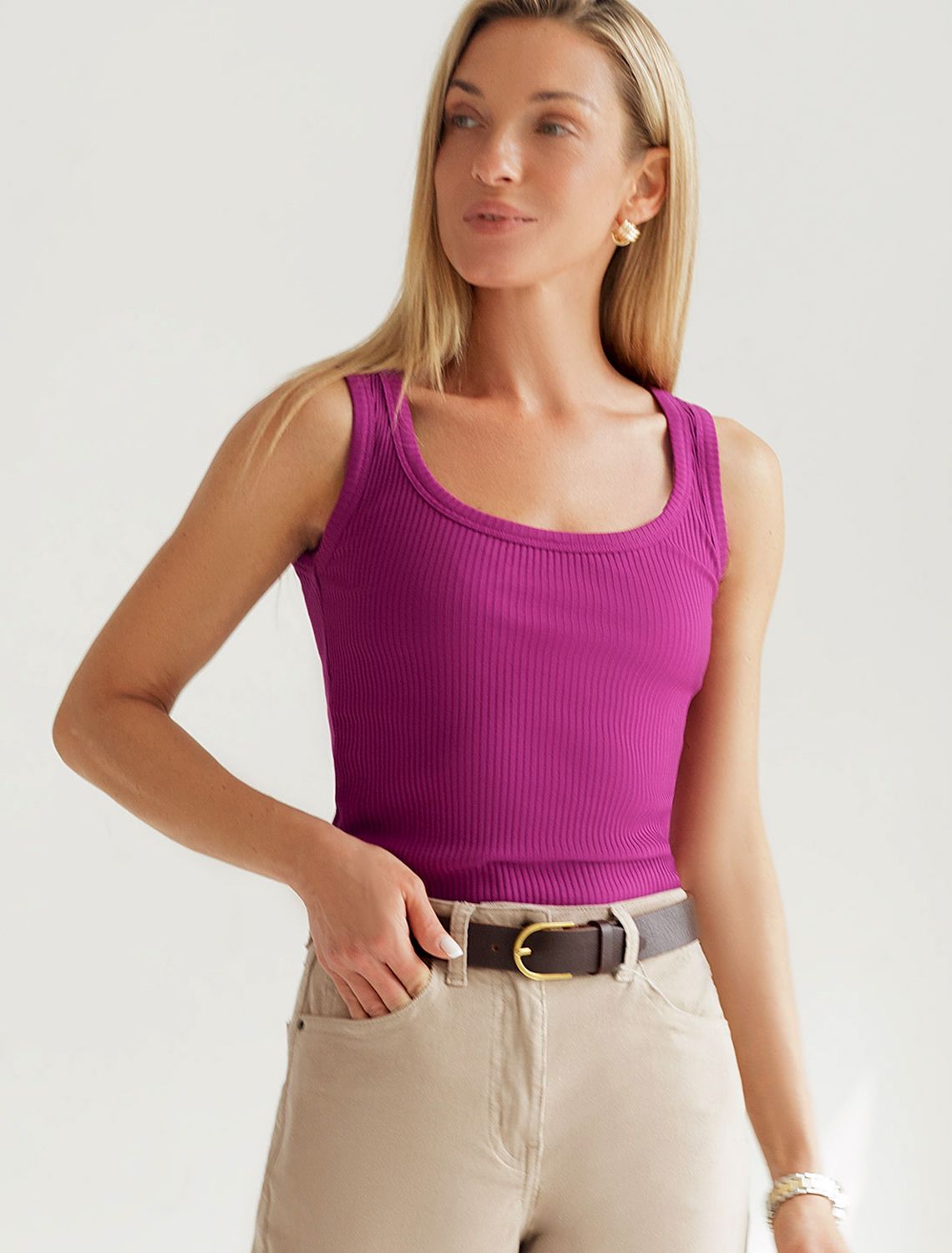 Топ из трикотажа в широкий рубчик D43.224 пурпурный