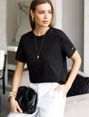 Футболка из трикотажа в широкий рубчик D49.105 черный