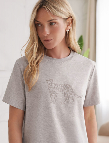 Футболка из премиального хлопка с авторским принтом D49.110 кофейный меланж_леопард
