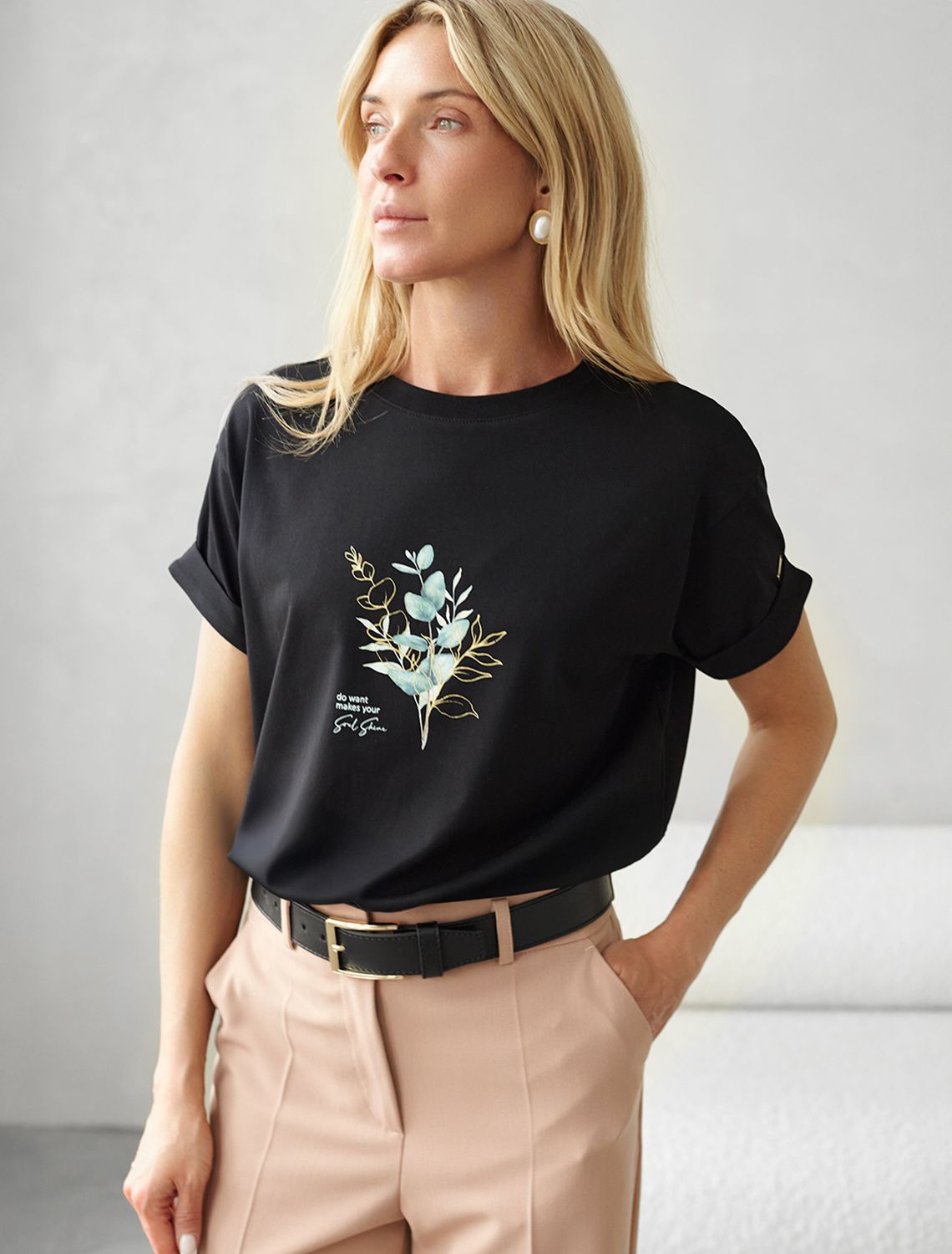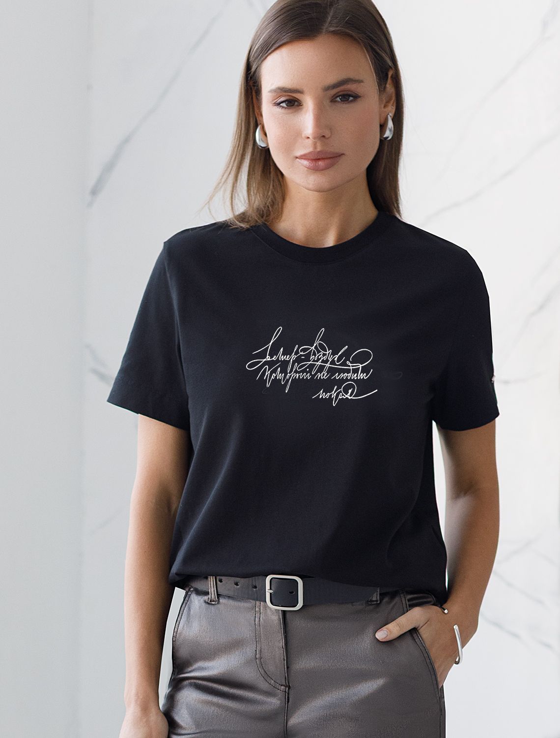 Футболка из премиального хлопка с авторским принтом D49.117 черный_soul shine