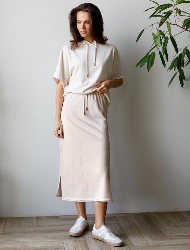 Ст.цена 1690р Юбка из тончайшего футера на резинке и отделкой с открытыми срезами D46.036 сафари