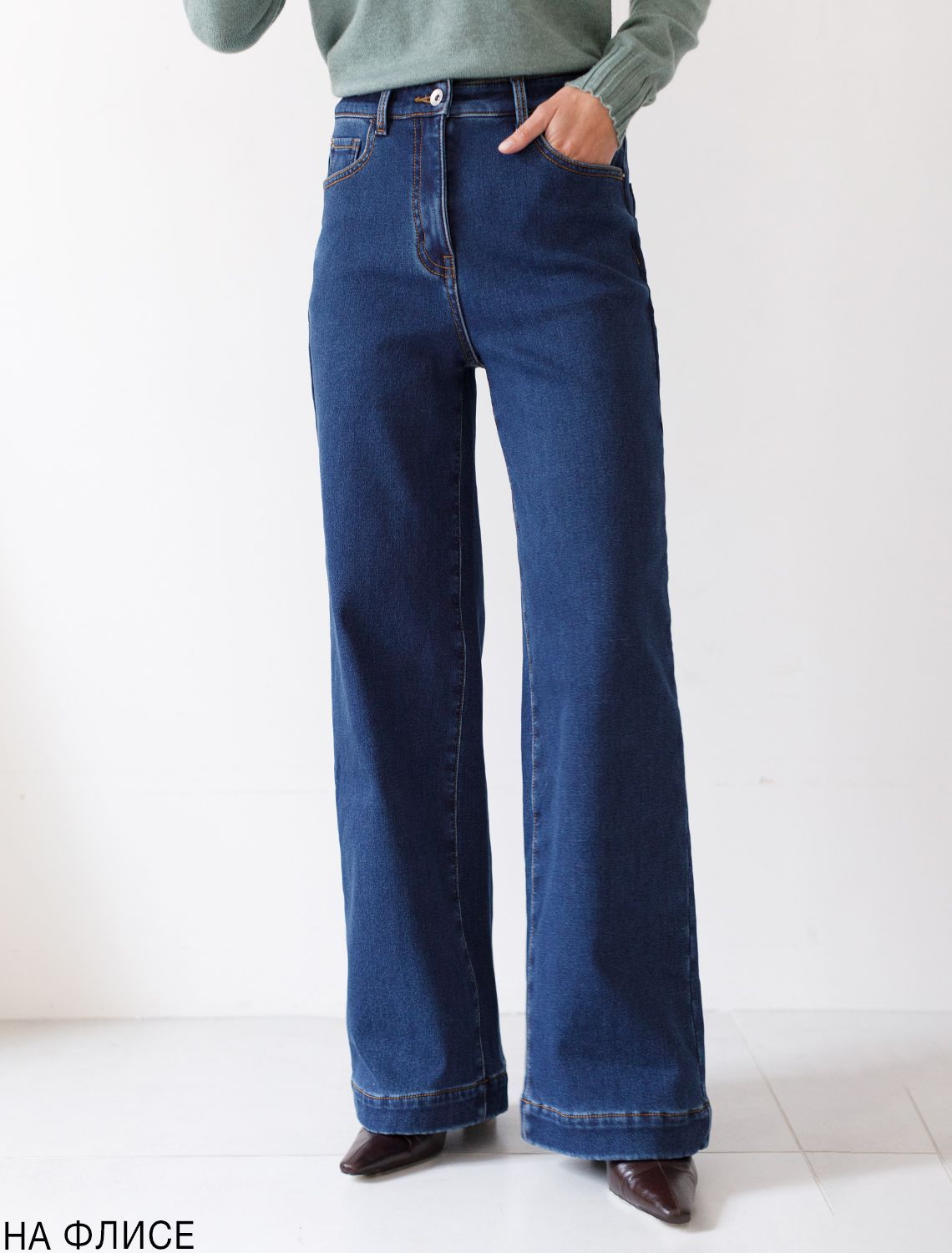 Прямые удлиненные джинсы на флисе