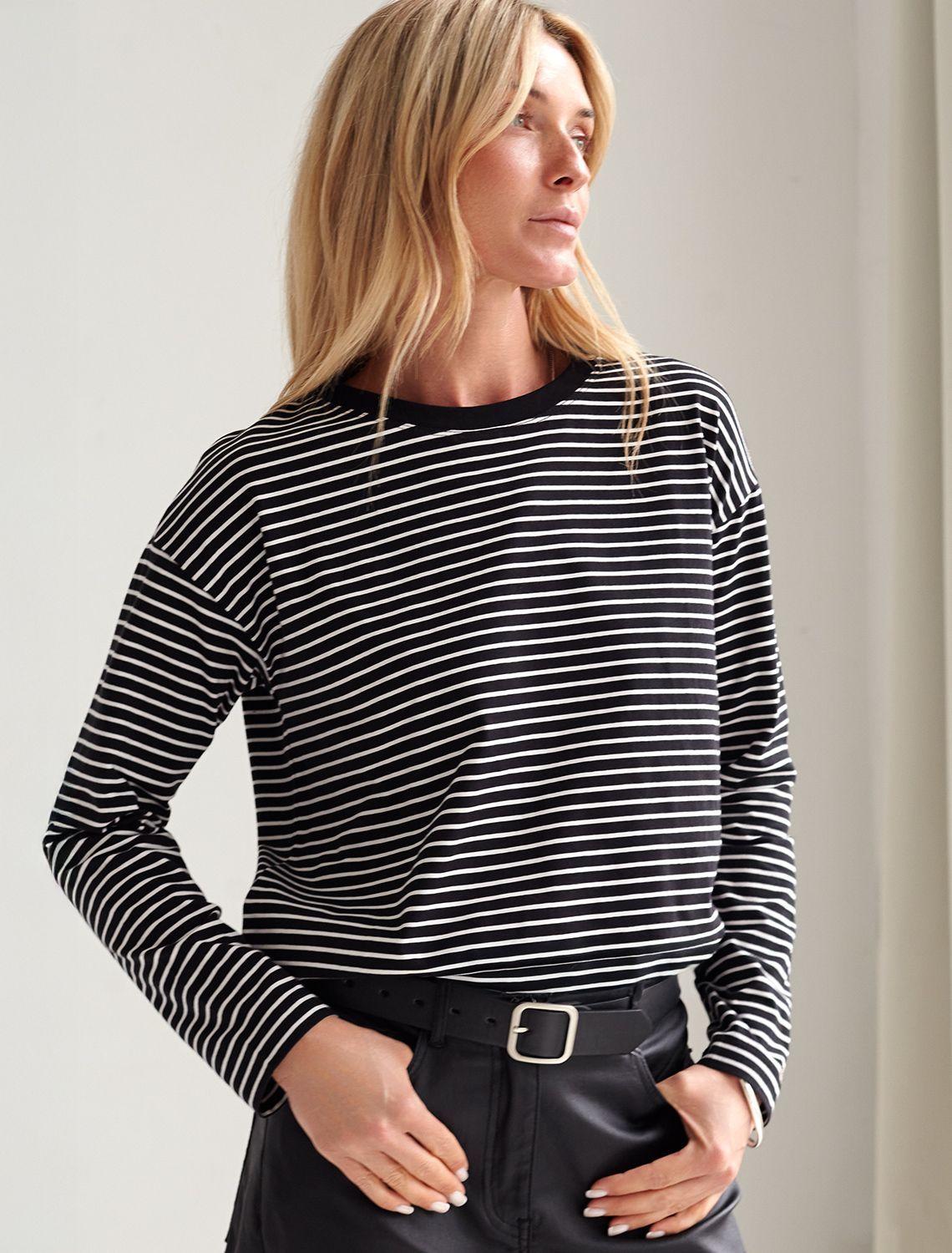 Футболка облегающая из хлопка в рубчик с вырезом лодочка с матовым покрытием металлик