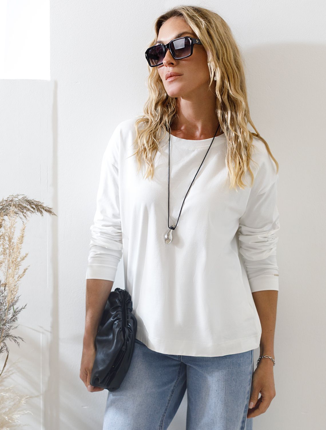 Базовый лонгслив из премиального хлопка с эластаном D49.147 белый