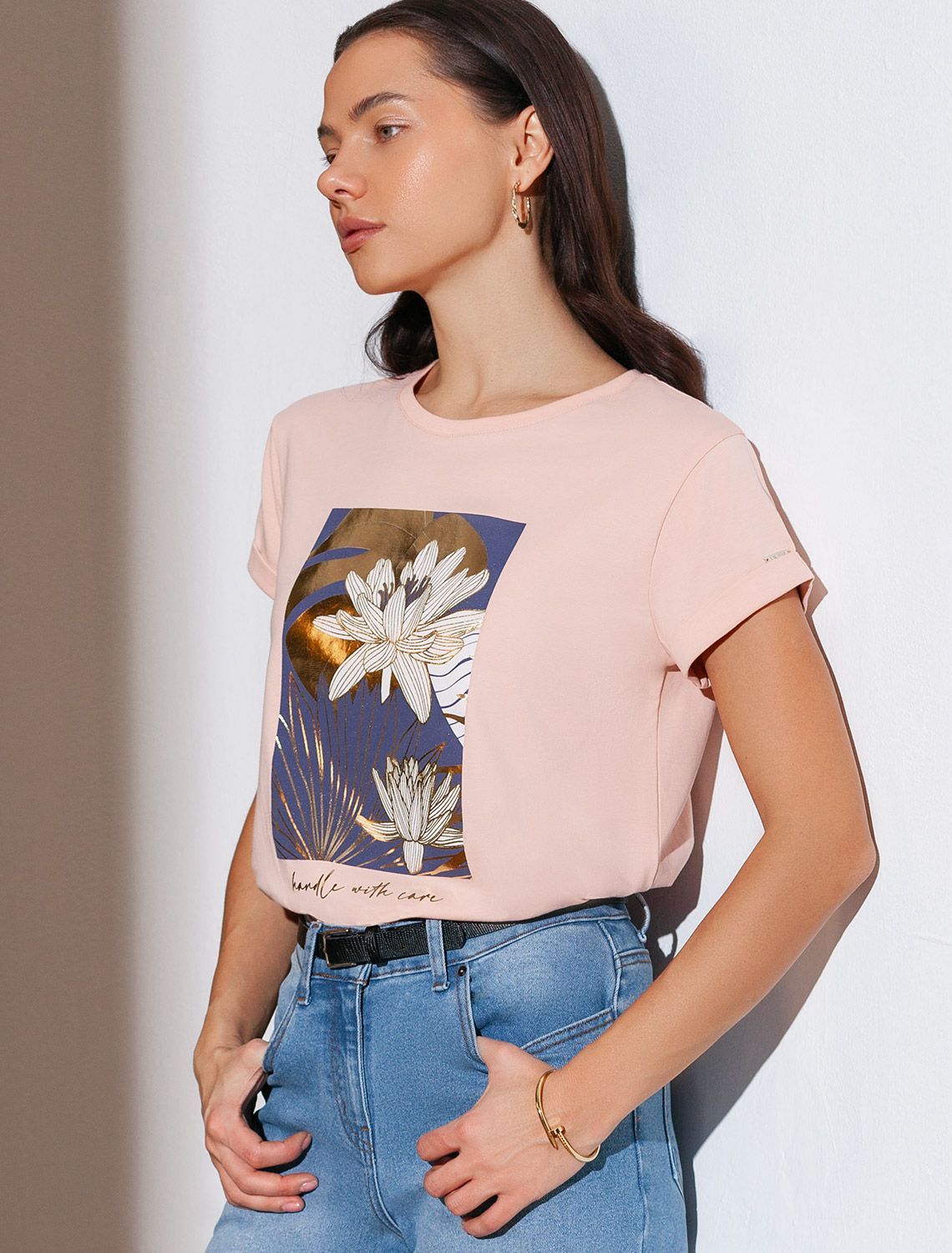 Свободная футболка с принтом из премиального хлопка с эластаном D49.146 пудра_care