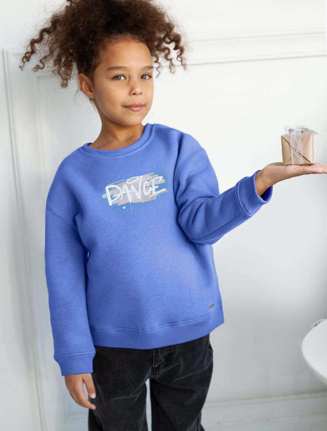 Ст.цена 1690р Свитшот из теплого футера-трехнитки с принтом фольгой F49.428 голубой