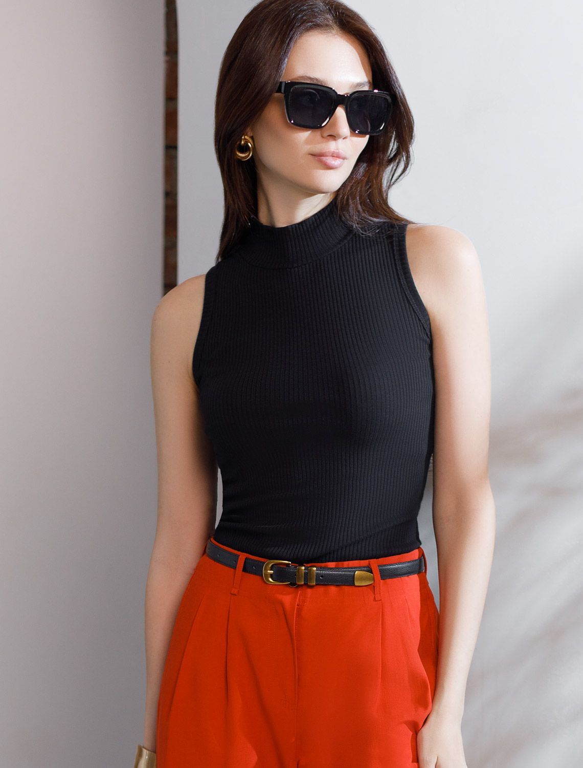 Топ из трикотажа в широкий рубчик D43.173 черный