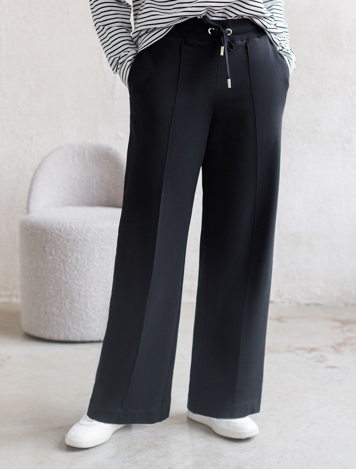 Прямые трикотажные брюки на резинке из футера двухнитки эластичные D44.135 черный