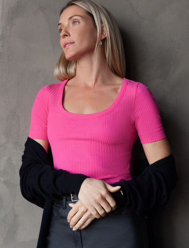 Топ из трикотажа в широкий рубчик D43.191 фуксия