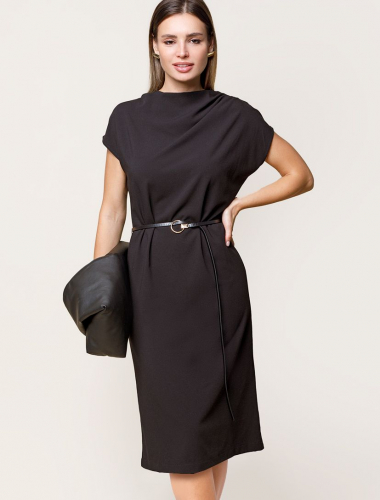 Ст.цена 2590р Платье из эластичного крепа с ремешком в подарок D22.525 черный