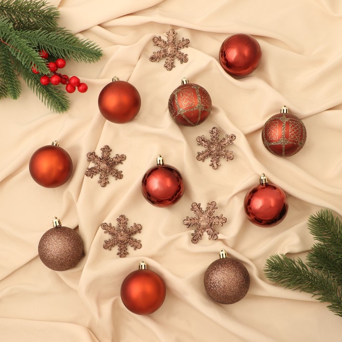 Ёлочные игрушки «Снежная феерия», набор 40 шт., d=6 см, снежинка 6 см, коричневый