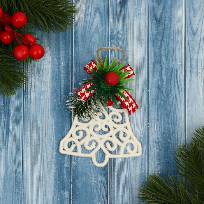 Ёлочная игрушка «Зимнее волшебство. Колокольчик ажур» пластик, 7×8 см, белый