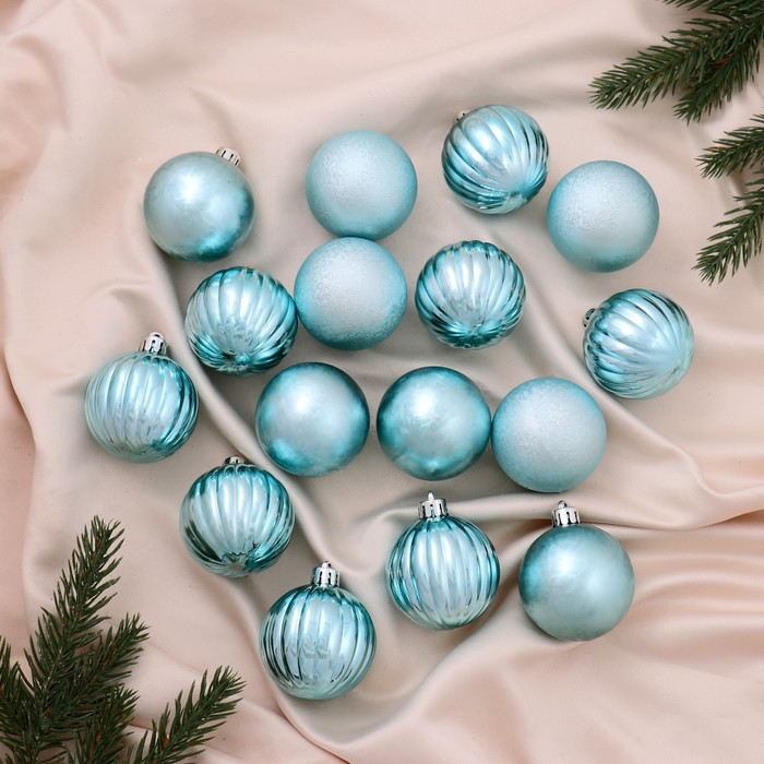 Ёлочные игрушки «Адель», шары новогодние, d=6 см, набор 9 шт., завитки, голубой
