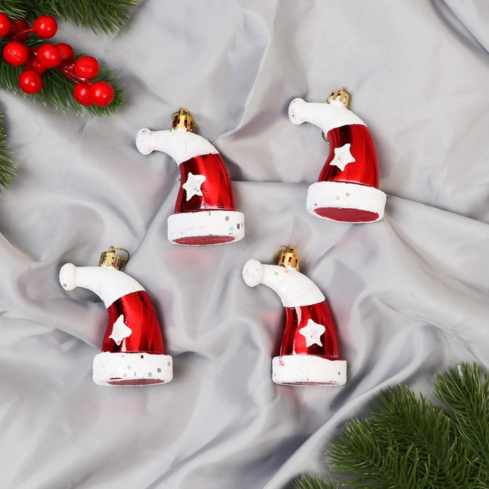 Ёлочные игрушки 4 шт. «Колпак новогодний», 4×7.5 см, красно-белый
