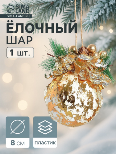 Ёлочный шар «Блеск рождества» новогодний, поталь, 8×12 см, бело-золотой