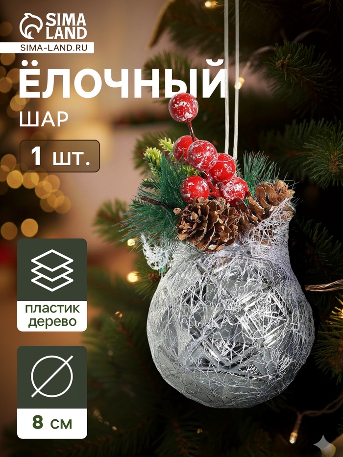 Ёлочные игрушки «Зимняя музыка», шары новогодние, d=6 см, набор 12 шт., ягодки, серый