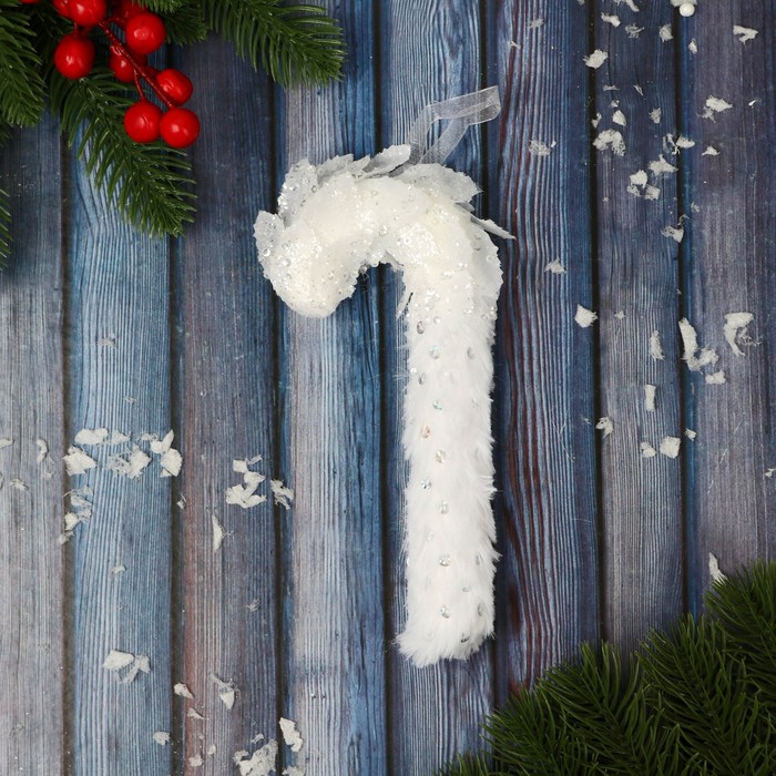 Ёлочная игрушка «Леденец » пайетки, 7×15 см, белый