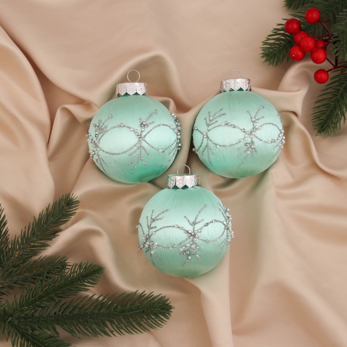 Ёлочные игрушки «Хайдвин», шары новогодние, d=8 см, набор 3 шт., нежность, зелёный
