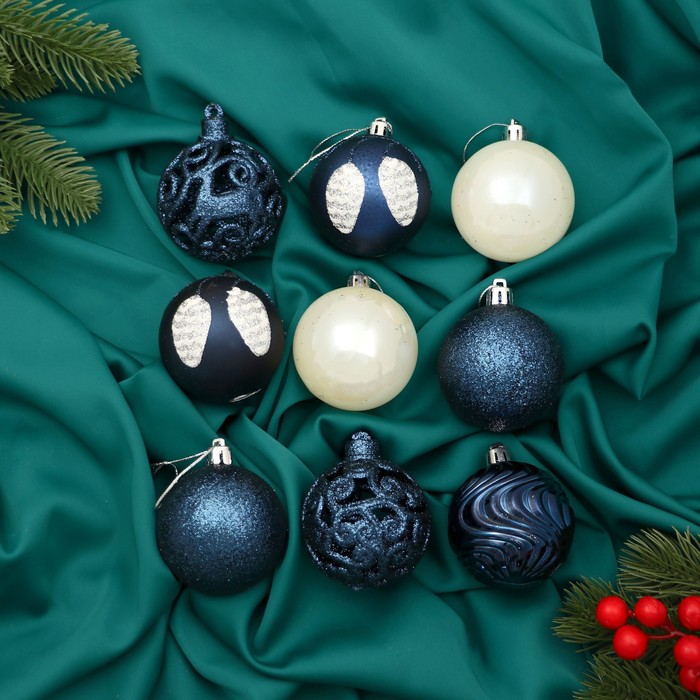 Ёлочные игрушки «Ксавье», шары новогодние, d=8 см, набор 3 шт., бело-синий