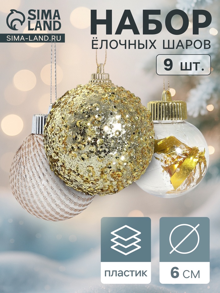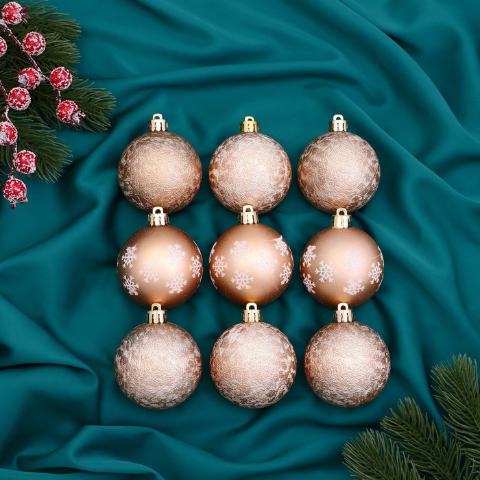 Ёлочные игрушки «Капризы зимы», шары новогодние, d=6 см, 9 шт. золото