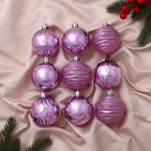 Ёлочные игрушки «Океан», шары новогодние, d=6 см, набор 9 шт., сиреневый