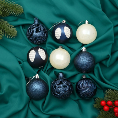 Ёлочные игрушки «Адель» волны, шары новогодние, d=6 см, 9 шт., МИКС