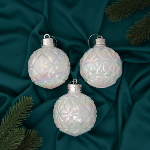 Ёлочные игрушки «Перелив», шары новогодние, d=8 см, набор 3 шт., сеточка, белый перламутр
