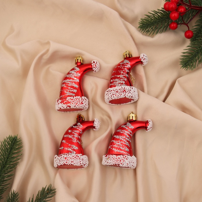 Ёлочные игрушки 4 шт. «Новогодний колпачок» 8×4.5 см, красно-белый