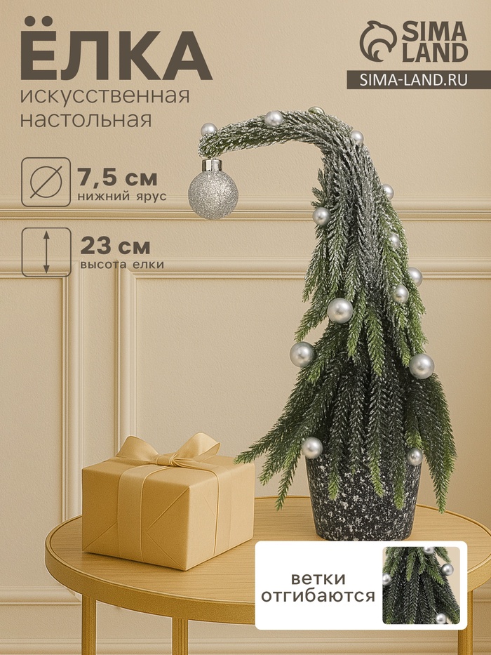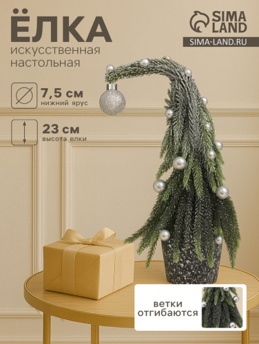 Искусственная ёлка литая настольная «Зимнее волшебство. С шариками и блёстками, в горшочке», 23×7.5 см, ветки отгибаются