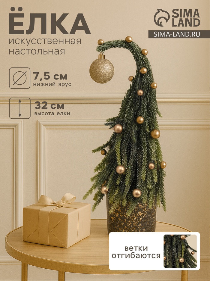 Искусственная ёлка настольная «С шариками и блёстками, в горшочке» 32×7.5 см