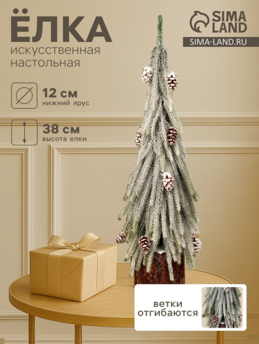 Искусственная ёлка заснеженная настольная «Зимнее волшебство. Длинные ветки» горшочке, 38 см, с шишками, ветки литые отгибаются