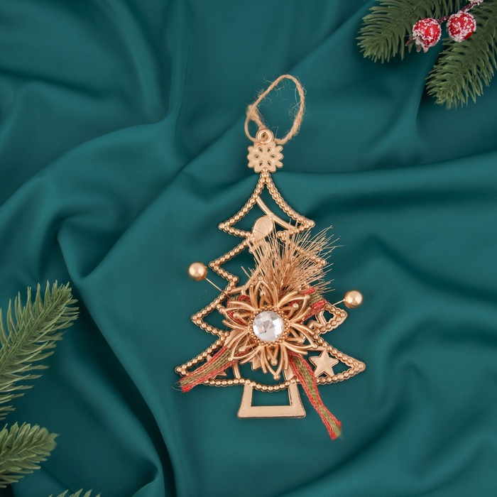 Ёлочная игрушка «Ёлочка с цветком» 16×10 см, золото
