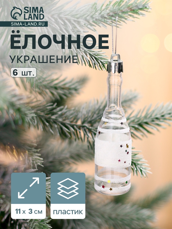 Ёлочные игрушки 6 шт. «Бутылочка» 11×3 см, прозрачно-белый