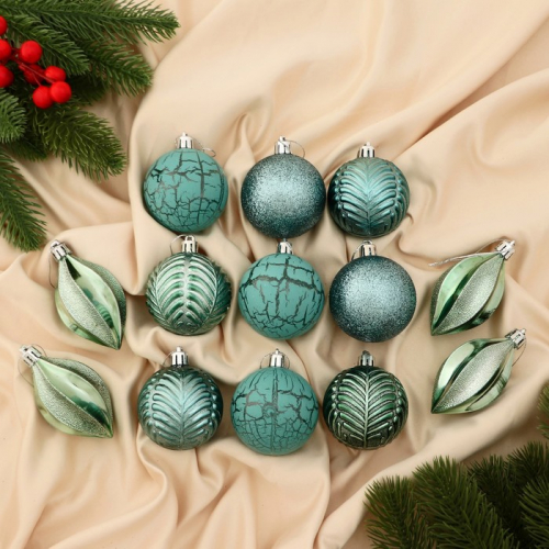 Ёлочные игрушки «Мелодия», пластиковые, набор 13 шт., 6 см, зелёный