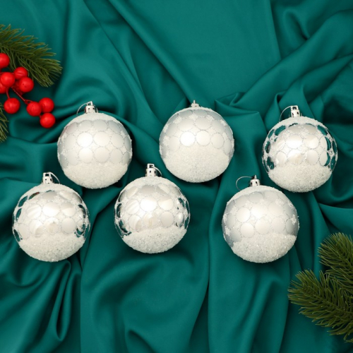 Ёлочные игрушки «Сюрприз», шары новогодние, d=7 см, набор 6 шт., серебро