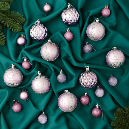 Ёлочные игрушки «Хоровод», шары новогодние, d=2.5 и 5.5 см, набор 33 шт., сиреневый
