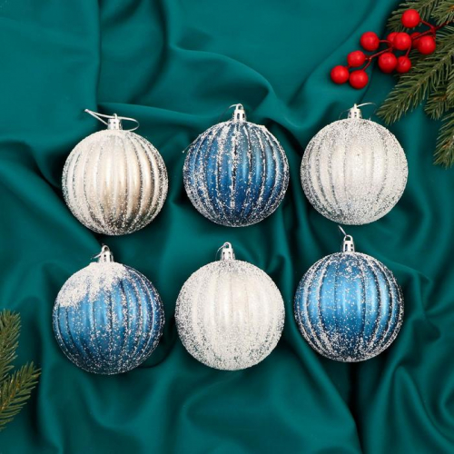Ёлочные игрушки «Роксолана», шары новогодние, набор 6 шт., d=8 см, бело - синий