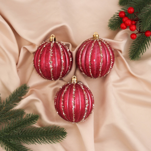 Ёлочные игрушки «Гремул», шары новогодние, d=8 см, набор 3 шт., красный