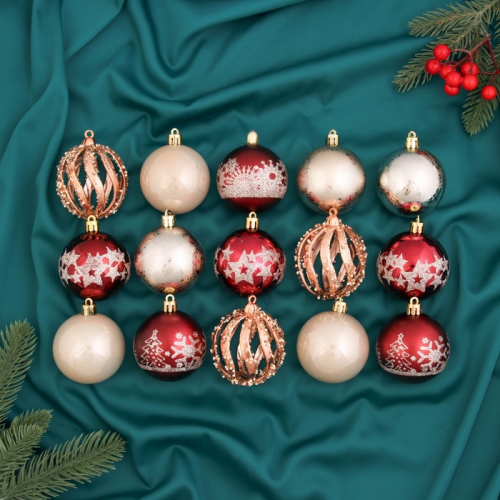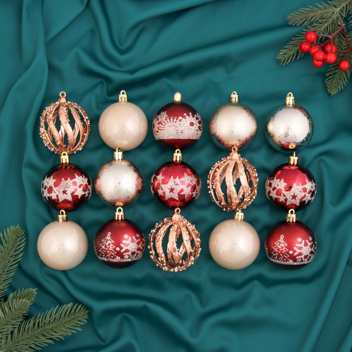 Ёлочные игрушки «Эйвери», шары новогодние, d=6 см, набор 15 шт., МИКС