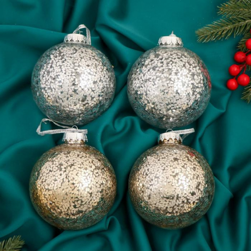 Ёлочные игрушки «Праздничный блеск», шары новогодние, d=10 см, набор 4 шт., серебро/золото