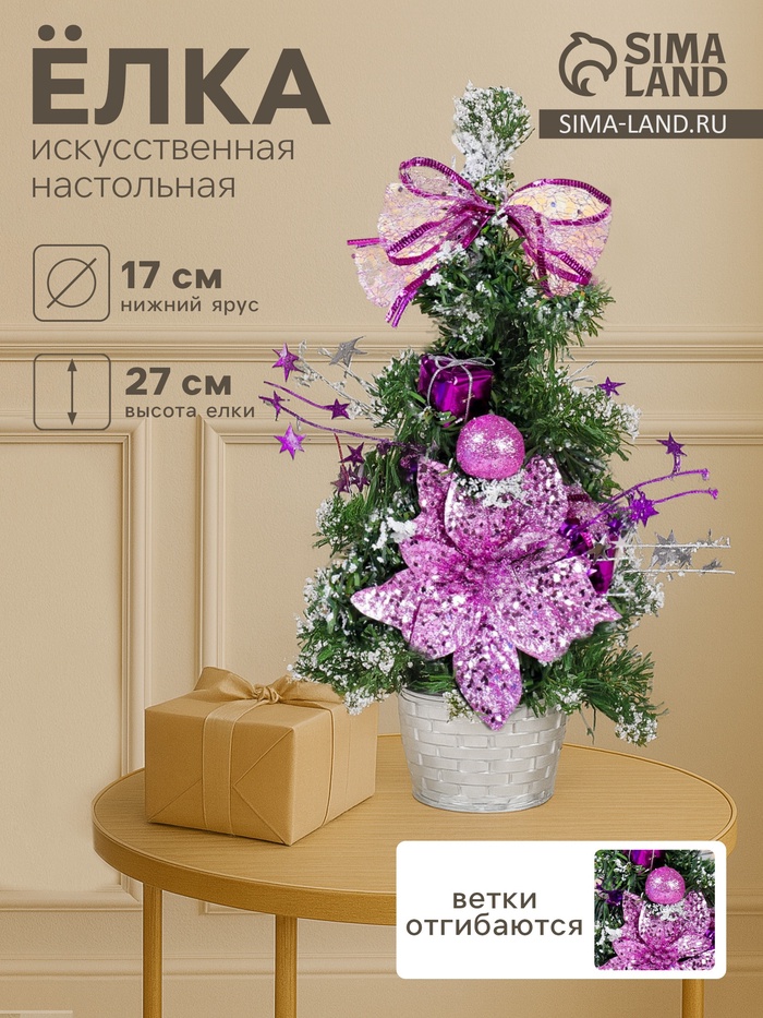 Искусственная ёлка настольная «Зимнее волшебство. Зимний лес» 27 см, ветки ПВХ отгибаются, сиреневая