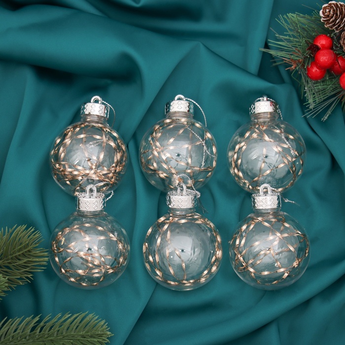 Ёлочные игрушки «Джотто», шары новогодние, d=6 см, набор 6 шт., золото прозрачный